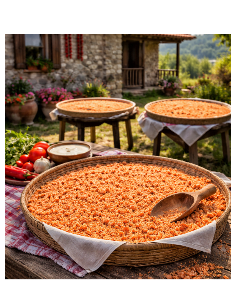 Not: Malzemelerin kalitesi tarhananın lezzetini direkt etkiler. Ege’nin doğal domatesleri ve biberleriyle yapılan tarhana çok daha aromatik olur